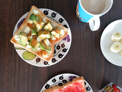 平日の朝食はパンとトマトと果物が定番化しています。子供はジャム(しかも一口サイズにカットしないと食べない!)、私は残り物でトーストです。時間との闘いの中、手に取るお皿はいつもパラティッシシリーズの16.5cm。トーストにはちょっと小さいけど、準備も片付けもコンパクトにできるこのサイズがありがたい。座って食べる時間はたぶん10分くらいだけど、好きなお皿に元気をもらっています。