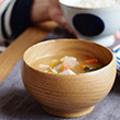 私たちに親しみがある6つの樹種を使って、職人さんが丁寧にろくろ木挽きで形づくっています。天然素材を使用しているため、ひとつひとつの木目、色合い、風合いが異なり、年月とともに深い色味へと変化していくさまをお楽しみいただけます。やさしい丸みのある素朴なお椀は1996年にグッドデザイン賞を受賞しており、毎日のお味噌汁はもちろんのこと、スープやシチュー、サラダやフルーツボウルとして使っても。食事をたのしむひと時を心地よい時間へと紡いでいきます。