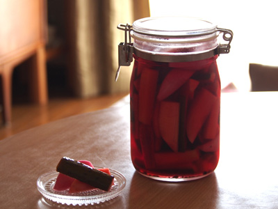 青山のファーマーズマーケットで新鮮なお野菜を買ってきました。そのままスティックサラダとしてポリポリ食べた後、残りはピクルスにすることに。常備菜があると毎日の食事の支度が少し楽になりますよね。あれっ、赤カブを入れたので赤く染まったピクルスに仕上がりました!