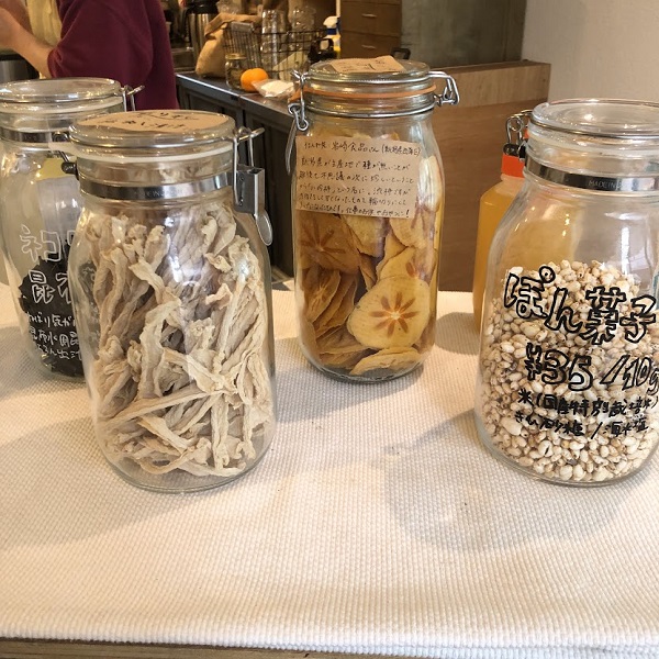 出社時のランチができるところを探していて見つけたお店、蔵前駅から徒歩5分くらいにあるelab (エラボ)さん。お店の前には東京近郊の農家さんから仕入れた野菜が並び、八百屋さん?と思ったほど。店内にはガラスの保存瓶に入った干した野菜や果物、お豆や茶葉が量り売りで売られていました。乾物もこうやってみると可愛いですよね。
