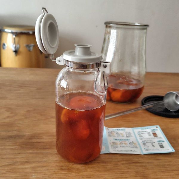 仕込んだ果実シロップをグラスに移すとき、レードルだと液だれしてテーブルやグラスがベタベタに…。そんな悩みを解決してくれたのが、この保存瓶です。使ってみると名前のとおり、「これは便利」!液だれせずにスムーズに注げて密閉も可能。500mlサイズは冷蔵庫にも収まりやすく、保存も安心。パーツがすべて分解できるので、シロップを飲み終えた後のお手入れも簡単です。家族も飲みたい時に手軽に使えて、大好評の一本です。
