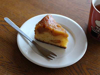 柳宗理のヒメフォークはちょっとしたお菓子や果物に使いやすいサイズなので、毎日のように使っています。柳宗理デザインの道具やカトラリーを少しずつ集めていて、ヒメフォークはすでに〇十年も使っていますが、飽きることなく壊れることなくおばあちゃんになっても使っていると思います。市販のバウムクーヘンにラム酒を含ませて溶かしたチョコレートをまとわせてみました。ちょっと大人なデザートです。