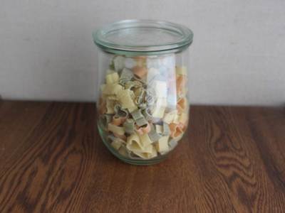 形の可愛いパスタも大人世帯だとあまり使わずに引き出しの中に入れっぱなし。放置されてしまい、かわいそうなのでウェックのキャニスターに入れてみました。チューリップシェイプ 1000mlだと1袋のパスタも余裕で入り、目につくところに置くと次回は使いたくなりそうです。