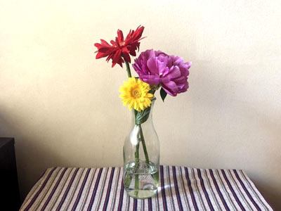 これから暑い季節に飲み物を冷やしたりと大活躍のウェック キャニスターですが、うちでは大きなお花を飾るのにも使っています。高さもあるうえ安定感も抜群。よく見るとガラスの色が薄緑色なんですよ。1つの物でいろいろ使えると嬉しいですよね。