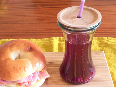 ウェックのガラスジャーはいろいろなタイプを愛用していて、中でもお気に入りがデリカテッセン。180mlと330mlどちらも使っていますが、活躍度が高いのはだんぜん180mlです。ちょうどよい飲みきりサイズですし、穴開きの木のふたをつけると一気にカフェ風のおしゃれさに。キッズが集まるホームパーティーにもよいですよ。