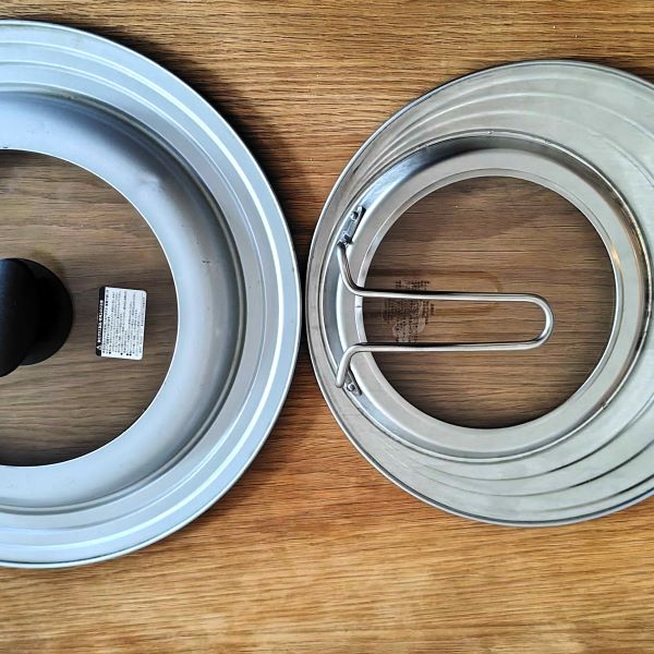 フライパンの蓋はサイズ違いでも使えるタイプを好んで使っていました。丁度買い替えたいなと思っていた時に出会ったのが家事問屋のフライパンカバー。私の使うフライパン大中小の3サイズにギリギリ対応してくれる上に、なんと「自立」してくれる良い子。自立することでキッチンスペースが広く使え、置き場に迷うこともなく作業がスムーズに。ステンレス製なのもお気に入りポイント。同じく家事問屋の「鍋蓋置き」とこの二つのアイテムがあれば「蓋置場問題」がほぼ解決するのでオススメ。
