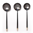 料理をつくる時に、使う鍋にあった道具を使うとより美味しい料理ができます。強い火力が必要な中華料理には柄の長めのお玉やヘラを使うと手元が熱くなりません。普段あまりみかける事の少ない餃子を綺麗に鍋底からこそげ取る長めのヘラは、焼きあがった餃子を鍋からしっかり剥がしてお皿に盛りつけるのに便利です。お玉とヘラ各種は木柄部分に穴を開けて、見せる収納ができるようになったプロキッチン別注です。中華料理によく使うジャーレンも鍋の大きさと作る量に合わせて各サイズ取り揃えました。