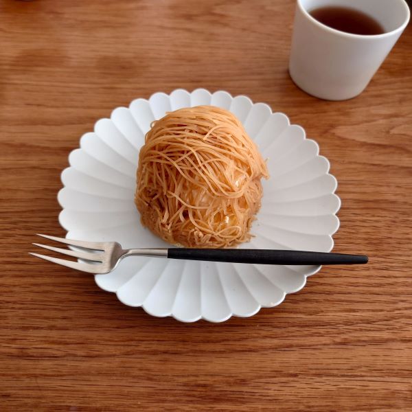 パレスプレートは、一見すると普段使いにはもったいないように思えますが、実は電子レンジや食洗機、オーブンでも使用できる、とても実用的なお皿です。光の当たり具合でもう少し白っぽく見える色合いも気に入っています。今日は、このプレートにタルトタタンをのせて、ちょっと特別なお茶の時間を楽しみました。いつものおやつや食事も、このプレートに盛り付けるだけで、一段と素敵に見えるので、とても嬉しいです。