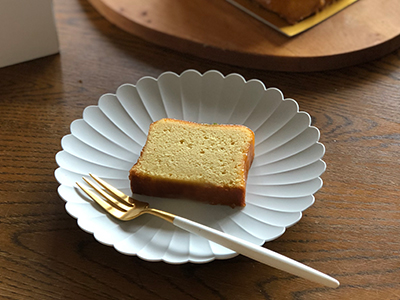 独特の質感とスモーキーな白が魅力のarita japanのパレスプレート。このプレートにのせるとお花が咲いたようで、ケーキもちょっとおめかしした気分。取り皿としてももちろん、ティータイムにもぴったりの一枚です。