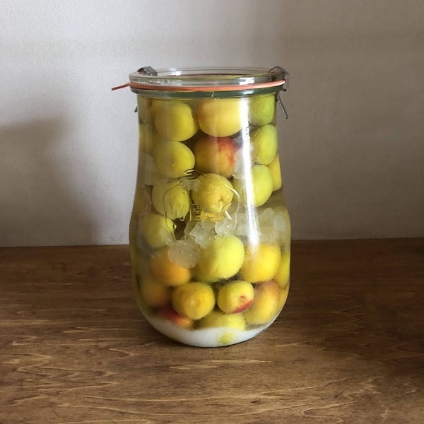 ここ数年は梅シロップを作っていましたが、今回はスタッフ千秋に教えてもらった[さしす梅]に挑戦しました。材料は、「さ」砂糖300g 「し」塩100g 「す」酢 約4カップと青梅1kg、。普通の梅干しより塩分が控えめなので食べやすく、酢の防腐効果で傷みにくいのが特徴。砂糖のほんのりとした甘みが加わることで、そのままでもより美味しく食べることができるんですよ。材料を消毒したウェックのガラス瓶に入れて、涼しくて日の当たらない場所に2~3週間ほどおいておけば出来上がり。梅を天日干しすれば「さしす梅干し」になり、残った「梅酢」は、調味料として、ちらし寿司やサラダ、和え物にといろいろ使えるのも嬉しいですね。