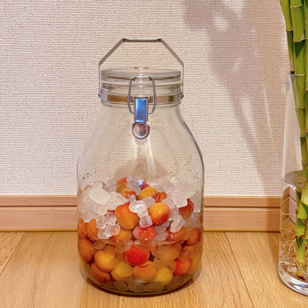 今年の梅シロップは、見たことのないピンク色の「ミス・ナデシコ」という希少な梅を使っています。シロップが可愛いピンク色になると聞いて、とても楽しみにしています。毎日梅シロップの様子を確認していて、一日に何度も目にするので、容器の可愛さもすごく大事だと思います。普通の密封瓶というか、このようなサイズのものはインテリアの一部にもなりますね。セラーメイトの密封瓶はシンプルで使いやすく、並んだ姿も美しく、周囲の環境に溶け込みやすいです。長年使っても見飽きない容器だと思います。