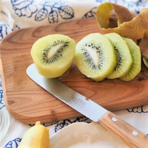 先が丸いロベルト・ヘアダーのオールドジャーマンナイフ。一見、果物を切るのには向かないのかなと思うかもしれませんが、そんなことはありません。果物程度の硬さなら問題なくスパッと切れます。りんごや梨のように種を取る作業もお手のもの。ハンドルの滑らかな手触りも心地よく、このナイフならではの上質さを感じます。テーブルでおしゃべりをしながら、「ちょっと果物でも剥こうか」なんてときにぴったり。おしゃれで使いやすい、ワンランク上のテーブルナイフです。