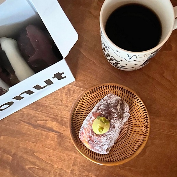ピスタチオのドーナツをのせて、コーヒーと一緒にほっとひと息。あたたかみのある飴釉が印象的な小鹿田焼の小皿は、和の器でありながら洋菓子ともよくなじみます。ひとつひとつ手作業で施された飛びかんなの模様は、どれも表情が異なり、同じものがふたつとない特別な存在。普段使いにも取り入れやすく、日々の暮らしにやさしく寄り添ってくれます。