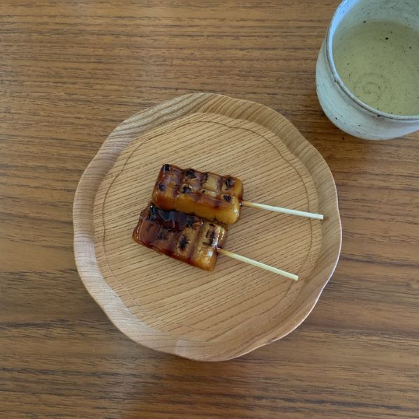 お正月の集いの楽しみといえば、久しぶりに顔を合わせるひとときはもちろんのこと、皆が持ち寄る手土産もまた、大きな楽しみのひとつ。今回も美味しそうなお菓子をたくさんいただきました。そんなお正月の雰囲気にしっくりと寄り添ってくれたのが、四十沢木材工芸さんの輪花盆。手のひらに収まる小サイズは、菓子皿にちょうどよく、何をのせても品のある佇まいに整えてくれます。木目は選べないサイズですが、職人さんが丁寧に仕上げたお盆は心に残る贈り物としてもおすすめです。