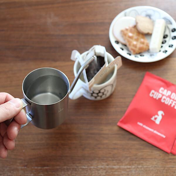 在宅勤務時に、気分転換に家でコーヒーを淹れることが増えました。でも夫はそんなにコーヒー飲まないし、1杯だけ淹れることがほとんど。ドリップポットを使うほどではないのでワンドリップポテが活躍しています。沸かしたお湯をワンドリップポテに移すことで適温になり、1杯分の量も測れて細ーく注げます。