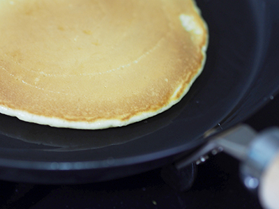 鉄フライパンの良さはしっかりと店長みさこから刷り込まれ、今では鉄じゃないと物足りないくらいに私も成長しました。板厚の違いでどのくらい差が出るのか、まずはホットケーキで試してみました。見てください!ご覧の通り綺麗な黄金色に。何枚焼いても黄金色のままで、外側カリッ、中ふっくらです。さすが板厚3.2mm!蓄熱性抜群です。