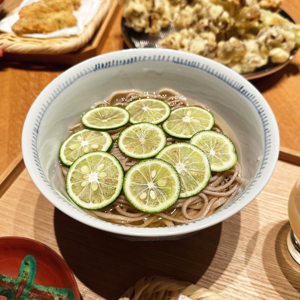 あっ!でた!と思ったら毎週買っているすだち。9月が一番出回っていますでしょうか。爽やかで上品な柑橘の香りをめいっぱい楽しむ時は「すだち蕎麦」を冷やかけでいただきます。大人の味です。準備は美味しいお出汁を冷やしておくことと、すだちのスライスだけ。薄くすだちをスライスするならぜひ専用器具「スライサー」を使ってみてください。見た目の美しさも、満足度もワンランクアップ。シンプルなお料理だからこそ道具の良さもお味に伝わってきます。