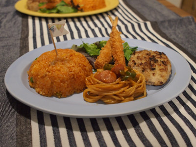おこさまランチって、大人にとっても魅力的じゃないですか?大人ふたり暮らしではお目にかかる機会はないので、おうちで再現してみました!チキンライスはライス型 菊でぱかっと。てっぺんのふくらみにお手製の旗を挿して、特別感のある晩ごはんになりました。