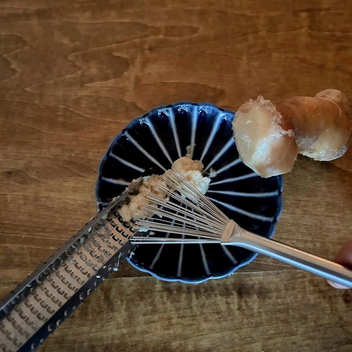 おろし金の掃除は面倒ですが、「EAトCO おろし金ブラシ」があれば簡単にカスを取り除けて、片付けが楽になります。先端がしっかりしていて細かい隙間にも入り込み、大根おろしやニンニクをおろした後の掃除もスムーズ。適度な硬さで手早く汚れを落とせるのが便利です。ステンレス製で丈夫かつサビにくく、長く使えるのも安心。シンプルなデザインでキッチンに置いても邪魔にならず、手に取りやすいのも魅力。ぜひ一度お試しください。