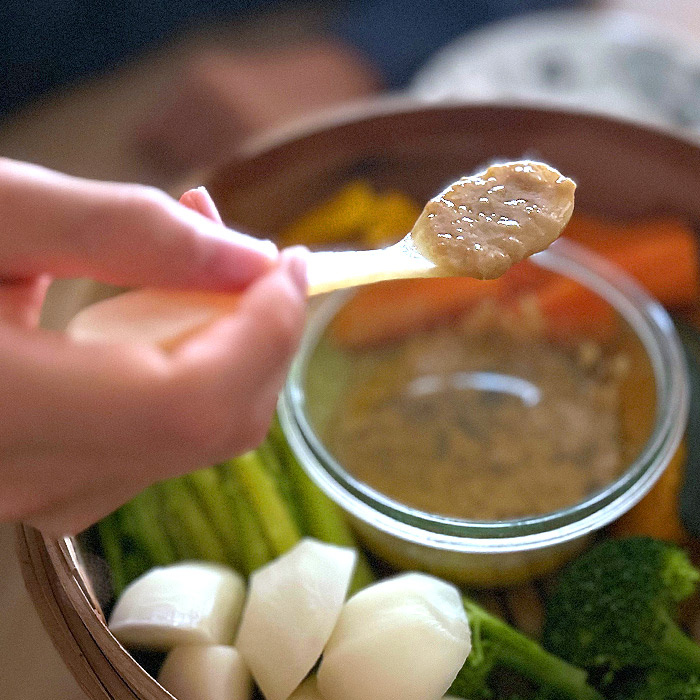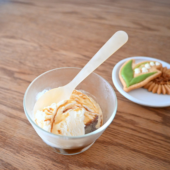 カラフルなハイムゾーネのエッグスプーン。少し深めの匙部分と枝の短さがディップやバーニャカウダなどに添えるスプーンとしてちょうど良いのでは?と閃きました。今までは百均の竹スプーンを使っていましたが、持ち手や匙部分が禿げてしまい残念な姿に。こちらですとそんな心配がないのでありがたい。私が選んだのは優しい色味のクリーム。実際に使ってみたところ、小さすぎず、大きすぎずでカーブした枝の部分も指にフィットし、使い心地よかったですよ。