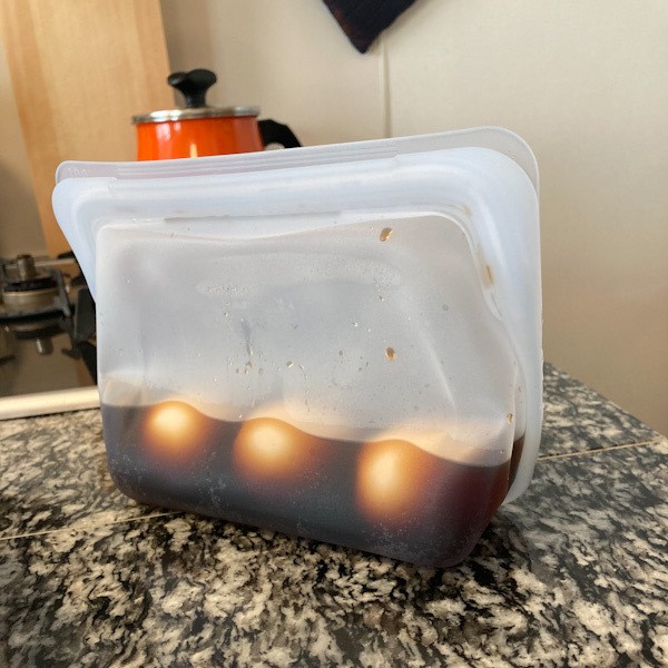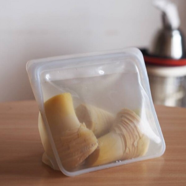 スタッシャーはサンドイッチサイズとハーフガロンサイズを前から持っていて、冷凍庫に立てて入れられるので省スペースで重宝していましたが、汁気のあるものをいれたときはもれないかどうかちょっと不安でした。スタンドアップタイプはその点問題なし。自立できる広めのマチつき底でスープ類、ピクルス、浅漬け、お肉の漬け込みなど汁気のあるものをいれても安定感があります。よく作っているのは常備菜の味卵。お弁当でおかずがちょっともの足りない時にさっと入れられて便利です。