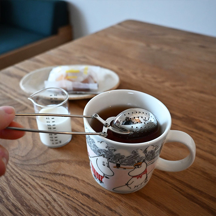 ひとり時間で紅茶を楽しみたい時は、ヴァイスのティーストレーナーが気軽に淹れられておすすめです。パカっと開くスプーンの中に茶葉を入れてマグカップにお湯を注げば、あっという間に一人分の紅茶が完成!ミルクティーにする時は、ヴァイスのガラスメジャーカップがミルクポット代わりになります。こちらレンチンもできるので、ホットミルクにもできます。ムーミンのマグでほっこりティータイム。最高です。