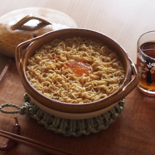 深夜番組で「サッポロ一番の中で好きな味は何か」という話題になり、あるお笑い芸人が「味噌をそのまま素ラーメンで食べるのが一番うまい」と言っていました。私も断トツ味噌味、そして生卵をポトンと落とすのが好みです。片手鍋で作るときは卵が鍋底に張り付いて、最後の片付けが面倒でしたが、この土鍋だとこれ一つで完結。出来上がる少し前に中央にポトンと落とした卵が土鍋の蓄熱性により程よくかたまり、いい具合に麺に絡みつくんですよね。しばらく土鍋ラーメンにはまりそうです。