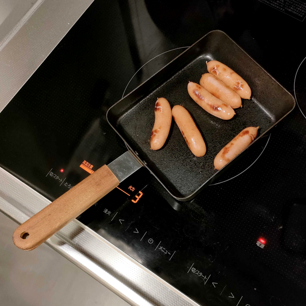 10年ほどの付き合いになるアンバイの玉子焼。お弁当に必ずリクエストされる玉子焼もだいぶ上達しました。撮影に貸し出すこともあり、その時に調理担当から「このアンバイ、私のよりも使いやすい!」と言われることが度々。考えてみると、思い当たる節がありました。最初の頃はほぼウインナー専用だったんです。サイズ的にコロコロしやすいんですよね。それで油が馴染んだのではないか!と。加工がされてるとは言え鉄のフライパンです。使い始めは油を気持ち多めにしてみてください。使いやすく育つと思いますよ。