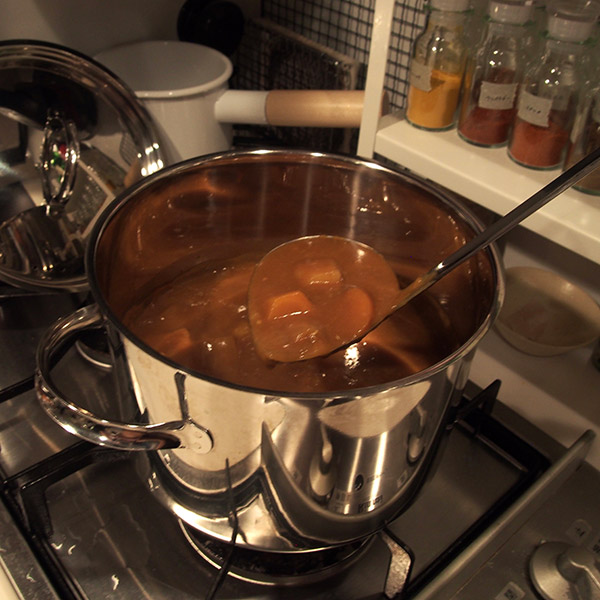 先日久しぶりにバーモントの甘口でカレーを作りました。その時、一度冷まして再度温めなおしていたのですが、ほかのことをしていてしばらく放置してしまい、慌てて混ぜてみたところ全くこびりついてなくてびっくり!お鍋によっては弱火でも、小麦粉を使ったシチューやカレーは特に焦げ付きやすいですが、さすがはOPA。この鍋底の厚み、安心感が違います。でも、放置しないのが一番ですね。苦笑