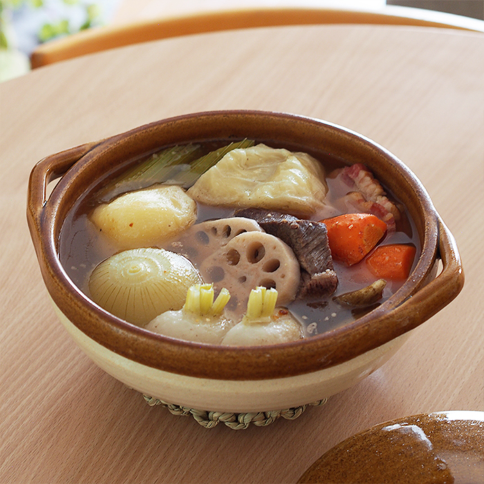 秋に入ると途端に煮込み料理が恋しくなります。普段はストウブで作るポトフですが、そのまま鍋ごとドーンと食卓に置きたかったので、今回は土鍋で作ってみました。レシピは最近マイブームのタサン志麻さん。牛スネ肉も玉ねぎも全て丸ごと入れて煮込むだけの簡単レシピでしたが、どれもお箸で切れちゃう程柔らかく仕上がりました。調べてみたところ、土鍋はゆっくりと火を通してくれるので煮込み料理に最適なんだとか。家族三人で食べきれるサイズです。次は煮込みハンバーグに挑戦してみます。