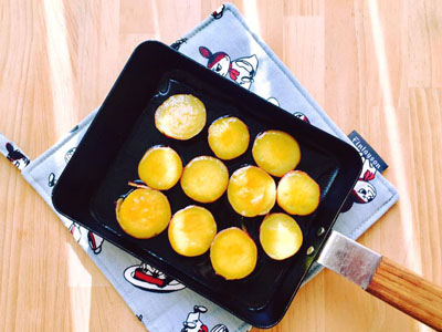 毎日のお弁当作りに大活躍の卵焼き器ですが、今日はさつまいも1本分のはちみつレモン煮を作ってみました。いつもは大きいお鍋を使うのですが少量を作るにはピッタリの大きさ。美味しくできましたよ。