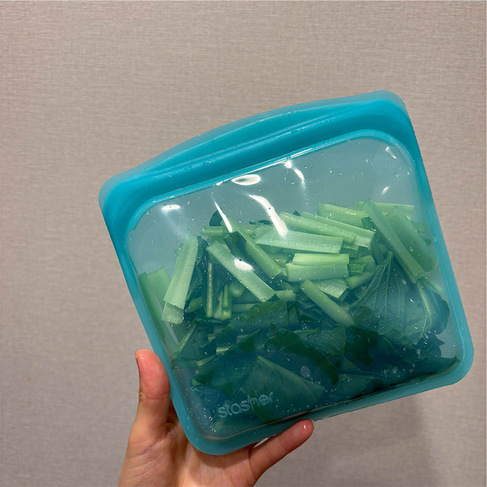 スタッシャーで火を使わないポテトサラダを作ってからスタッシャーの虜です。レンチンOK!保存もできて液漏れしない。最強ツールです。プロキッチンではクリアとアクアの2色展開ですが、わたしは野菜はアクア、作り置きおかずはクリア、と色違いで使い分けています。パッと見分けられるおかげで朝の忙しい時間なども時短になります。スタッシャーだけで作るポテトサラダの作り方はプロキッチンのインスタグラムにてご紹介しています。とっても簡単に美味しくできるので是非試してみてくださいね!