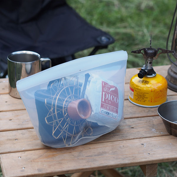 春の訪れを感じ、キャンプ好きは何だかそわそわする季節となりました。まだまだ朝晩は冷えますが、焚火で暖をとるのもキャンプの醍醐味。また朝もやの中で淹れる目覚めの一杯の珈琲は格別の美味しさです。キャンプに持参するタイムモアの折り畳み式グラインダー含むコーヒーグッズをひとまとめにしておくのにお勧めしたいのがスタッシャーのシリコーンバッグ。ボウル型は自立するので、置き場所にも困らず、中身が一目で分かるのもうれしいポイント。水汲みバケツとしても良い仕事をしますよ。