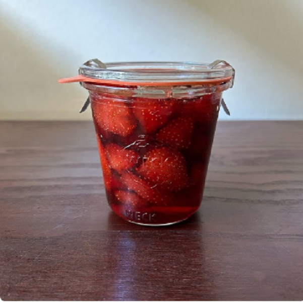 店先にイチゴがならぶこの季節、思い立ってイチゴジャムを作ってみました。今回は前日にイチゴに砂糖をまぶし一晩おいて砂糖がとけてシロップになった状態で、そのシロップを先に煮詰めて作るというレシピに挑戦。イチゴを煮る時間が短いのでイチゴの形が崩れずなかなか良い感じに出来上がりました。ウェックの保存瓶だとパッキンセットを使えば密封も簡単で気軽にジャムづくりができますよ。