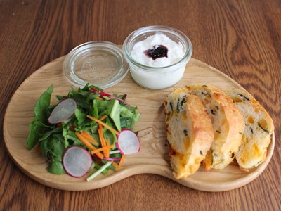 小さめの50mlの容器がかわいいです。今回は朝食のヨーグルトを入れてみました。たくさんは入りませんが、ちょこっと食べるにはちょうど良い量です。次回はジャムを入れたのをいくつかテーブルに並べてみたいなあと思っています。
