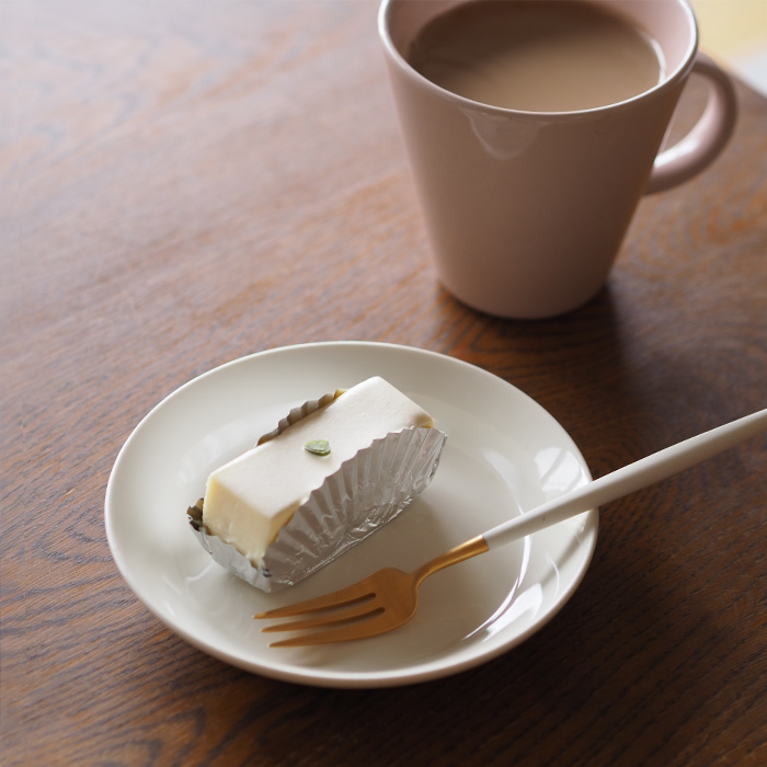 久しぶりに赤坂しろたえのチーズケーキをいただきました。私にとって懐かしい味は変わることなく、やっぱり美味しくて安心します。そんな時に活躍してくれているのがティーマの15cmプレート。15cmという小ぶりなサイズがこのケーキにぴったり。このサイズは取り皿にしたり、調理中にちょっと材料を置いたりする時にも重宝していて、何枚あっても困ることのないお気に入りのお皿です。