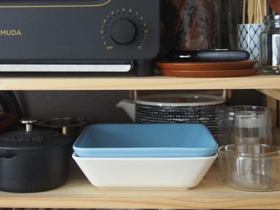 我が家には丸い器が多いので、四角い食器は少数派。ただ、今回ティーマ スクエアプレートを仲間入りさせて良かったなと思ったのが、無駄なスペースが無くスッキリと収納ができるところ。重ねて置いても安定感があるので安心です。16cmはチャーハンやカレーにも使えるので重宝しています。