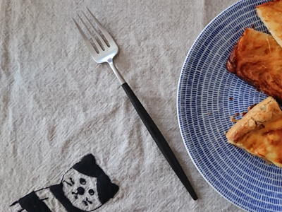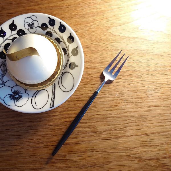 我が家のゴアはディナー系、デザート系ともにブラックシルバー一択でした。長年愛用しているのですが、ちょっと飽きてきたので2色目としてブラウンシルバーのペストリーフォークをチョイスしてみました。ブラックに比べると優しさを感じる色味でティータイムにピッタリ。作家さんものなどの手作り感のある器との相性もいいですね。食器のカラーや雰囲気に合わせて柄の色、金属部の色を選んでみる楽しさを実感しました。次はピンクかセラドンにしようと目論んでいます。