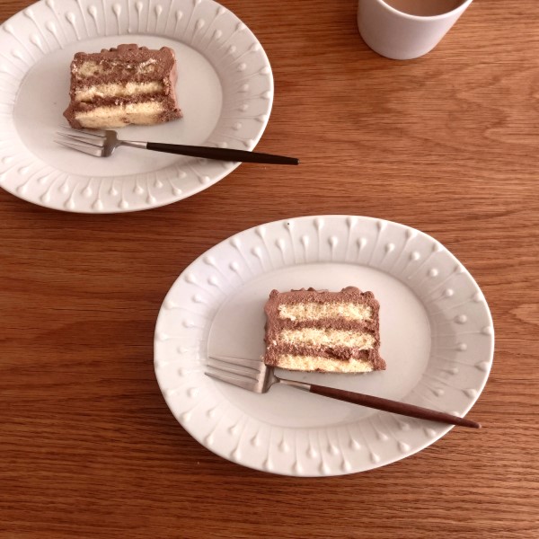 20年後の自分のために、そして家族のために、今年に入ってから食生活を少し見直しています。かと言ってストイックな自己管理はできません。甘いものもやめられない。以前から気になっていたヴィーガンスイーツ店でバレンタインに自分へのご褒美チョコを買いました。異素材の組み合わせが好きなので、木製トレイに陶器のカップ、プレートはガラスをチョイス。ガラスプレートの凹凸に午後の優しい光が差し、濃淡がより際立って美しい。お気に入りに囲まれてのおやつタイムが穏やかに過ぎていきます。