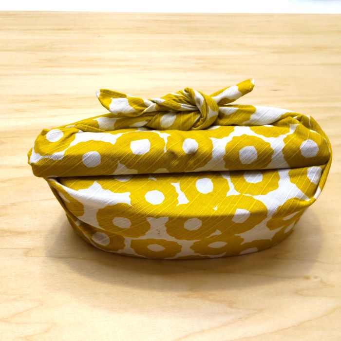 お弁当箱を選ぶ時間も楽しいけれど、そう頻繁に買い替えるものではないですよね。でも、お弁当を包む布なら、その日の気分で気軽に変えられます。先日、むす美さんに、お弁当箱とお箸を一緒に包む方法を教えていただきました。これならお箸もしっかりまとまり、バッグの中でも安心です。やわらかな黄色が目を引く、名前の通り「ほっこり」気分になれるお弁当包み。毎日のお弁当時間が、ちょっと楽しみになる一枚です。
