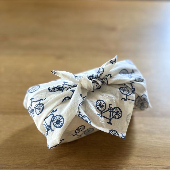 かわいい!と思って思わず手に取った、自転車柄のハンカチ。木版を使って一つひとつ模様を押していく「ブロックプリント」。わずかなかすれや色のゆらぎも、手仕事ならではの味わいがあって、均一すぎないところに、なんともいえない温かみがあるんですよね。大人が持ってもかわいいネイビーだけど、お子様にも喜んでもらえそう。オーガニックコットンならではのくったりとやさしい肌触りも魅力です。自転車好きなお友達やお子様へのプレゼントにいかがですか?ちなみに柄違いもかわいいです!