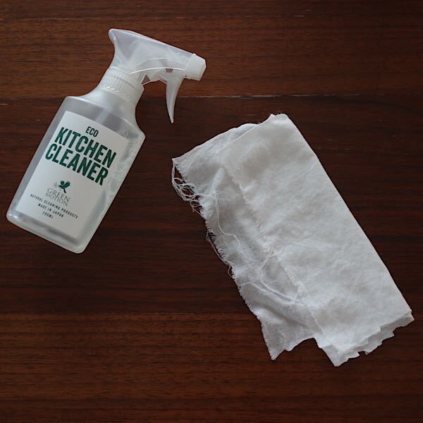 たぶん10回くらい洗っては使いまわしているこのさらし、いよいよ最後の最後は台拭きに。実は台拭きとしても優秀です。吸収も良くすぐ乾くのでキッチンクリーナーでふき取ったあとじゃぶじゃぶ水洗いしてタオルハンガーにかけておけばすぐに乾くんです。醤油やタレなどのシミがついたって、酸素系漂白剤で漂白すればまっさらのさらしに元通り。ちょっとくらいほつれても糸くずが出ることもないし、まだまだ使い倒したいと思います!!余談ですがこのキッチンクリーナー、以前プロキッチンでもお取り扱いのあったもの。今は扱っていませんが我が家ではキッチン掃除にはこれがないと!!というくらいの必需品で個人的にネットで購入しております。このクリーナー、なんといっても成分がすごいんです。界面活性剤は約1%で、あとはほとんど「水」!なのにしっかり油汚れも落ちるし子どもが汚す食卓にも安心して使えます。このキッチンクリーナー、またお取り扱いしてほしいなと個人的に熱望しているのでした~