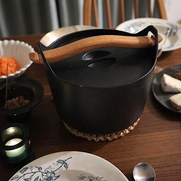 かもめ食堂で小林聡美さんが肉じゃがを作っていたお鍋。私のせまいキッチンをちょっとおしゃれに見せてくれている気がして、コンロの上に出しっぱなしにしています。別に使わなくても良いのですが、ついつい木の取っ手で蓋をあけてしまいます(笑)蓄熱性が高く煮物やスープがおいしく煮えるのはもちろんのこと、最近はサルパネヴァでお米が炊けることを知って炊き込みご飯なども炊いたりしています。