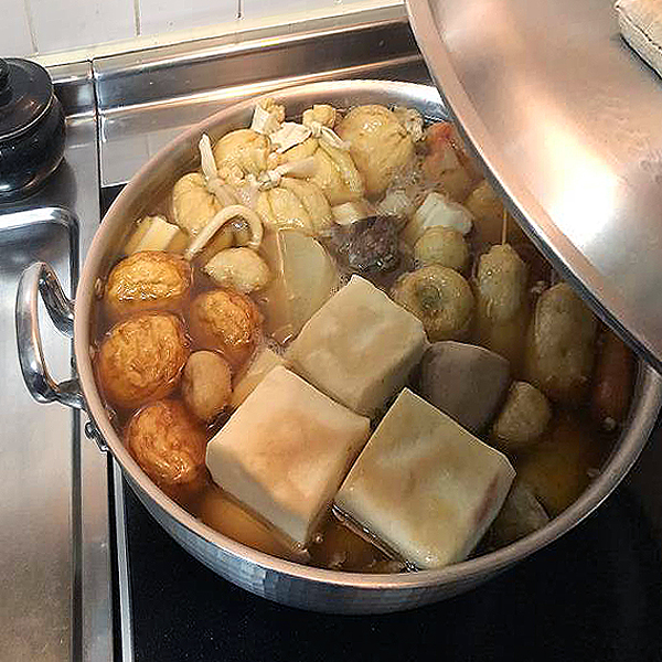 今まであれもこれもと具材をいれて、結局一つに収まりきれず二つの鍋に。。。というのがわが家のおでんのお決まりでした。やはりおでんは大きなお鍋にどーんと作るのが美味しいようですよ。アルミは軽いので、こんなに大きな鍋なのに1.2kg。さらに厚みのあるこちらの鍋は温度が下がりにくく、キッチンから熱々を食卓へ持ってくれば、食べ終わるまでそんなに冷めずに食べられます。もちろん二日目のおでんも味が染みてておいしかったですよ。