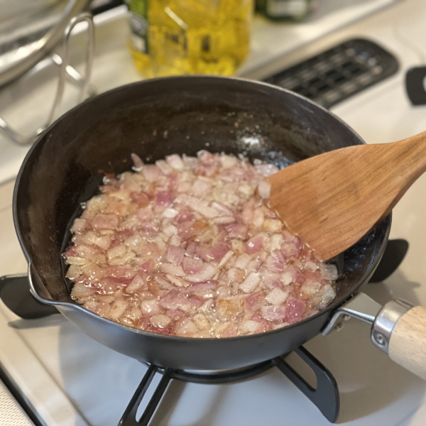 台湾の友達から教えてもらったル―ローハンのレシピの中で、欠かせない食材の一つは「揚げ赤玉ねぎ」です。簡単そうですが、弱火で30分以上揚げないとパリパリにならないので、とても時間のかかる作業です。そして、ちょっと油跳ねが危ないですね!こんな時は安定感がある、小さめの天ぷら鍋が最適です。写真は赤玉ねぎ1個の量が全部入ってる状態。サイズ感もちょうどいいです。おかげさまで、最後は美味しいル―ローハンが完成できました。残った油の香りはすごく美味しそうで、チャーハンにも使えます。