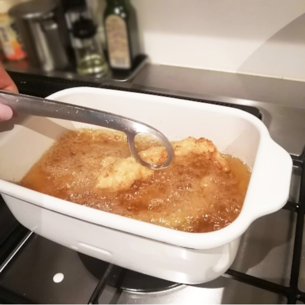 揚げ物鍋は丸が常識だと思っていたけど、長方形がこんなに使いやすいとは、使うたびに感動です。コンパクトなので油の量も控えられるし、真っ白だから油汚れもよくわかる。長い食材も揚げやすいし、かき揚げなんかもバラバラになりにくくてまとまりやすい気がします。とにかく、このまま収納しておいてもいいので億劫になりがちな揚げ物も気軽にやる気になれる揚げ鍋。買ってよかったー!