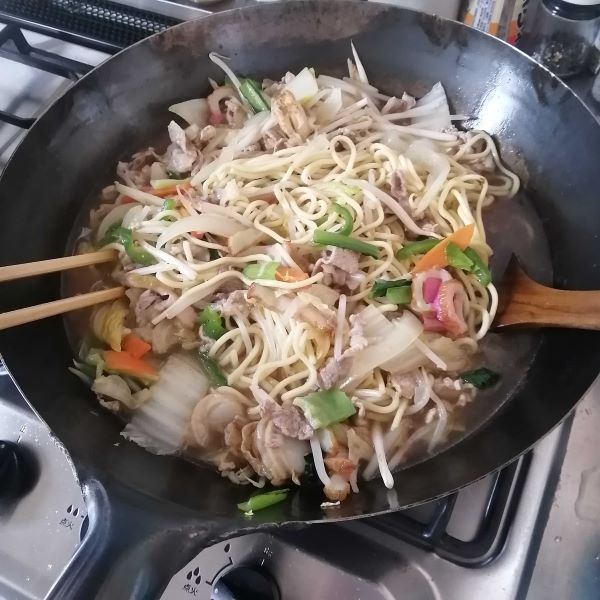 以前「スタッフの中華鍋の選び方3」のブログで紹介したこの中華鍋、大きいサイズにもかかわらず軽くて扱いやすいので毎週のように使っています。なかでも使っていて本当に買ってよかったと実感するのは週末によく作る焼きそば。野菜と麺を一緒に炒めると、つい具が飛び散るのですが、それがない!もちろん油はねもほとんどありません。何と言っても野菜がシャキシャキ、麺もべちゃっとしません。炒め物はフライパン、と思っていましたが、中華鍋を買うとその使い心地、料理の出来に感動します!