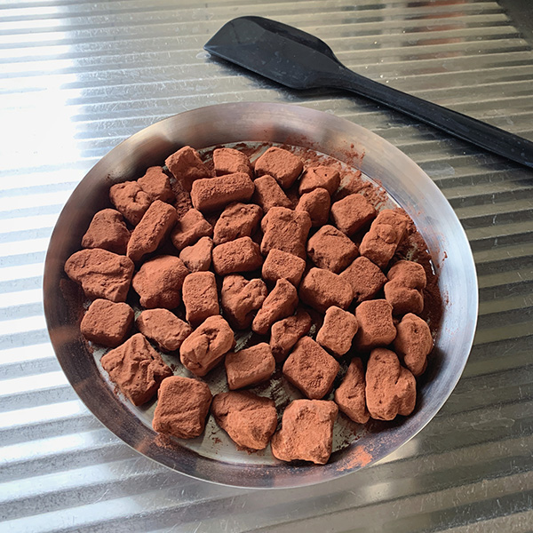 材料をよく混ぜて冷やしたら、小さくちぎってココアをまぶすだけ。こんなにトリュフって簡単に作れるのかと驚きとともに、美味しくて二度ビックリ。バレンタイン当日でも間に合いました!レシピは神田にある近江屋洋菓子店さんのYouTube動画から。(気になる方は是非チェックを!)因みに私は自分のために作りました。我が家はバットがないので薄く広げたい時は家事問屋のまる型トレーを使っています。浅いトレーがひとつあると何かと便利です。