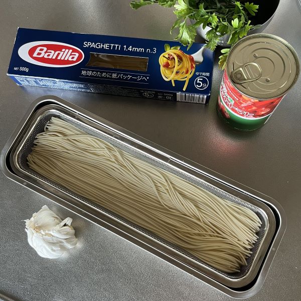 休日のランチにあると助かる乾燥パスタ。でも、ゆでる時間が長くて意外と作るのに時間がかかりますよね。そんなときは、朝から乾燥パスタを水に漬けておいてください!柔らかくなったパスタは、沸騰したお湯に3~4分茹でたら出来上がりです。お店で食べる生パスタのようにもっちもち、乾燥パスタとは違う食感に驚きですよ。こちらのバットに下ごしらえ角ザル1/2ロングをセットして蓋をして冷蔵庫に入れておけばスペースも取らず便利ですよ。