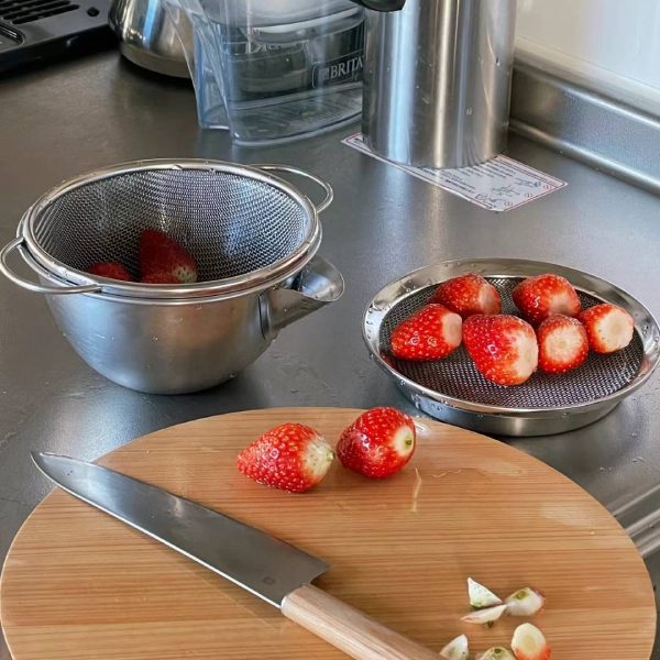 梅しごとの季節ですね。スーパーでよく見かける梅は約1kg入りのもの。その1kgの梅を洗うのにちょうどいいのが「横口ボールザルセット 26」です。たっぷりの水で洗ってもこぼれることがない余裕のあるサイズ感で、水切りも楽々。これから夏に向けておそばや素麺などの麺類をしめるのに活躍すること間違いなしなので今のうちの購入をお勧めします!